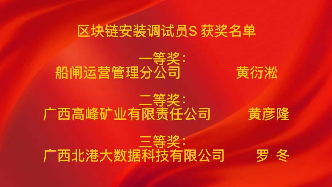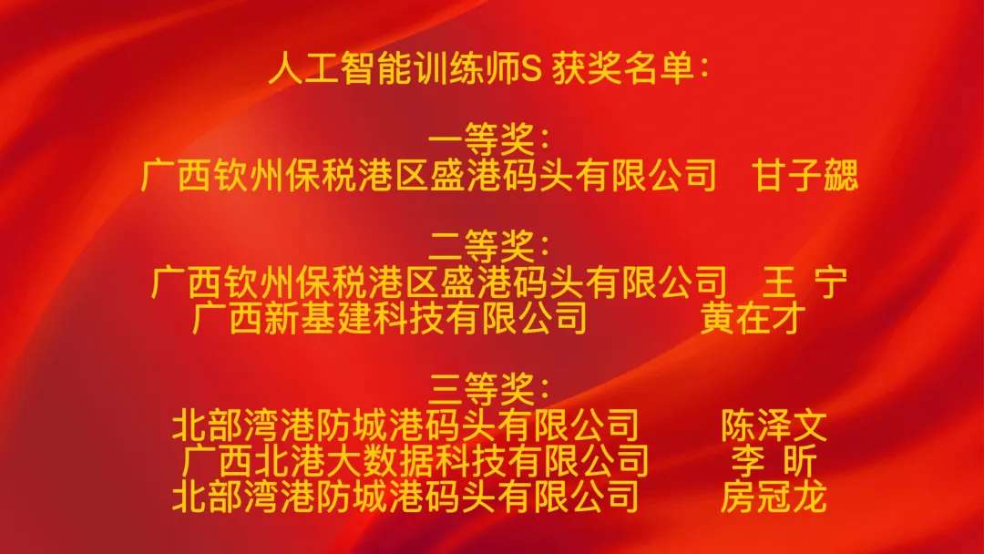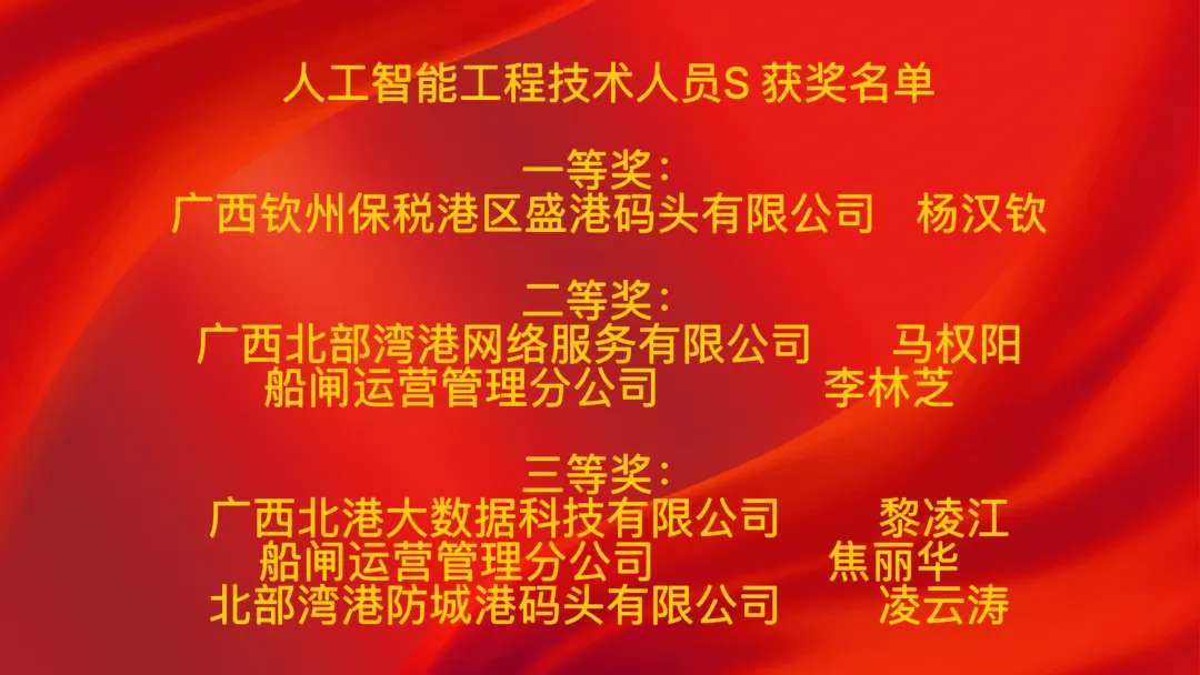 人工智能训练师S项目一等奖获得者、盛港码头信息部系统运维副主管甘子勰表示,此次获奖既是对专业能力的认可,也印证了AI与自动化码头运维的融合价值,未来将把竞赛所学转化为更精准的技术,赋能智慧港口建设;人工智能工程技术人员S项目一等奖获得者、盛港码头信息部数据工程师杨汉钦表示,一等奖是技术肯定更是创新动力,感谢集团平台让自己将运维技术与AI开发结合,未来会持续深耕技术、助力企业发展;物联网安装调试员项目一等奖获得者、盛港码头信息部网络硬件室数据运维组长秦国峻认为,获奖认可了自己将数据运维能力与物联网安装调试赛项结合的实践,验证了数据运维对物联网场景的支撑价值;区块链应用操作员项目一等奖获得者、西江集团船闸运营管理分公司运行调度员黄衍淞说,此次获奖是挑战与收获并存的旅程,让自己深化了对区块链技术的理解,未来会把经验带回岗位,助力西江黄金水道数字化转型。