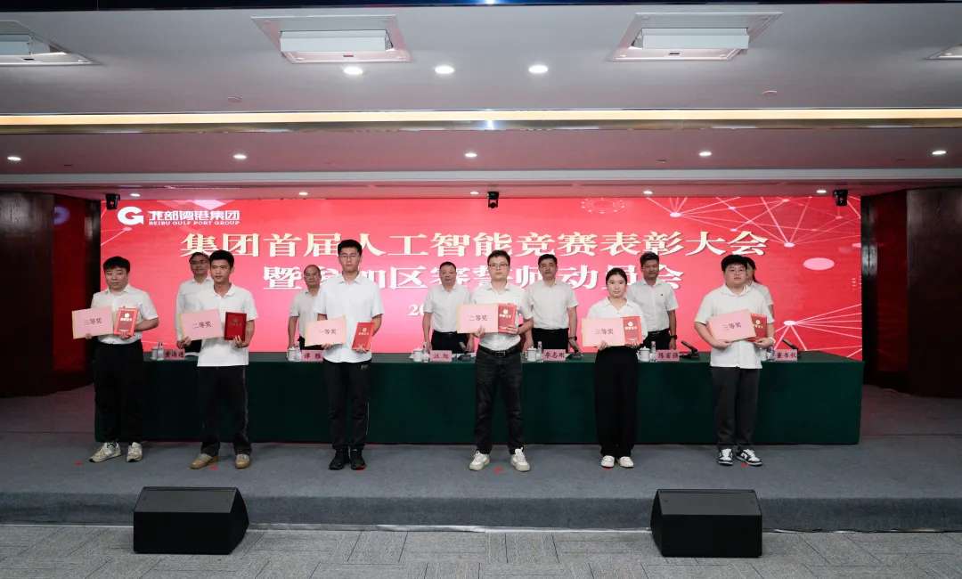 汪旭为竞赛获奖选手颁奖并就参加自治区人工智能大赛作动员发言。他指出,此次竞赛不仅仅是一场技术的较量,更是集团公司积极响应自治区党委、政府关于“以人工智能赋能传统产业”有关部署的生动实践,希望即将参加区赛的选手要继续保持这种积极探索AI技术、勇于创新的精神,将这种精神融入到日常工作中,形成良好的创新氛围,共同为集团公司的数字化转型贡献力量。他指出,集团公司党委已将人工智能技术的发展,摆在了推动北部湾港高质量发展的核心战略位置,人工智能技术是集团顺应时代、推动战略的必然要求,是提升业务智能化、增强竞争力及职工职业发展的关键,正深度融入北部湾港的方方面面。希望全集团上下要潜心学习实践,推动人工智能技术覆盖全产业板块。集团公司将搭建舞台,鼓励职工围绕 AI 技术创新应用提“金点子”、搞“微创新”,并将AI技能纳入竞赛体系,配套完整的荣誉阶梯和配套奖励措施及奖金来表彰职工,为推动人工智能技术在集团各领域场景的广泛应用全面争取资源和提供保障。