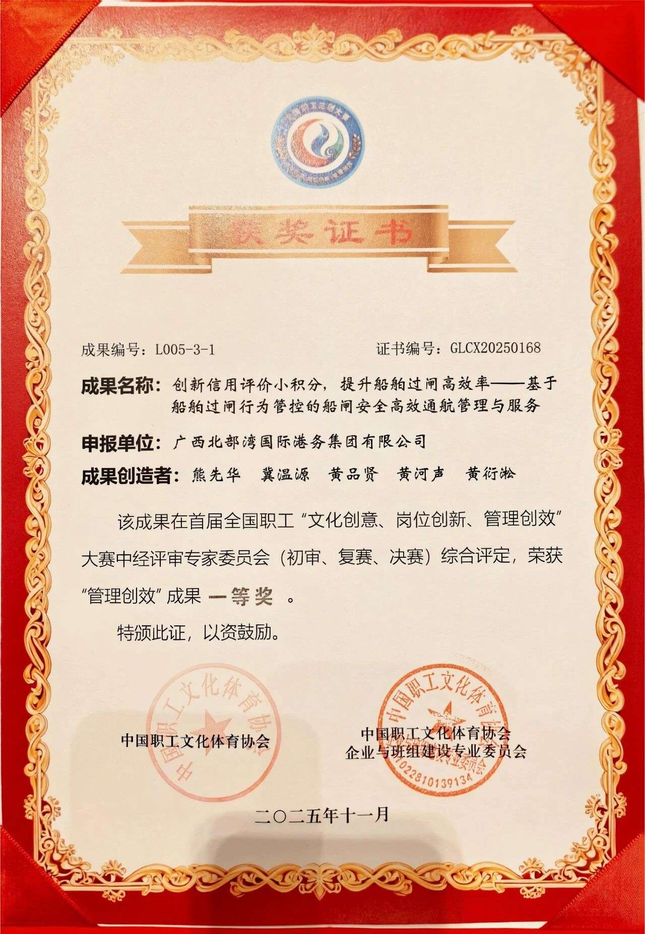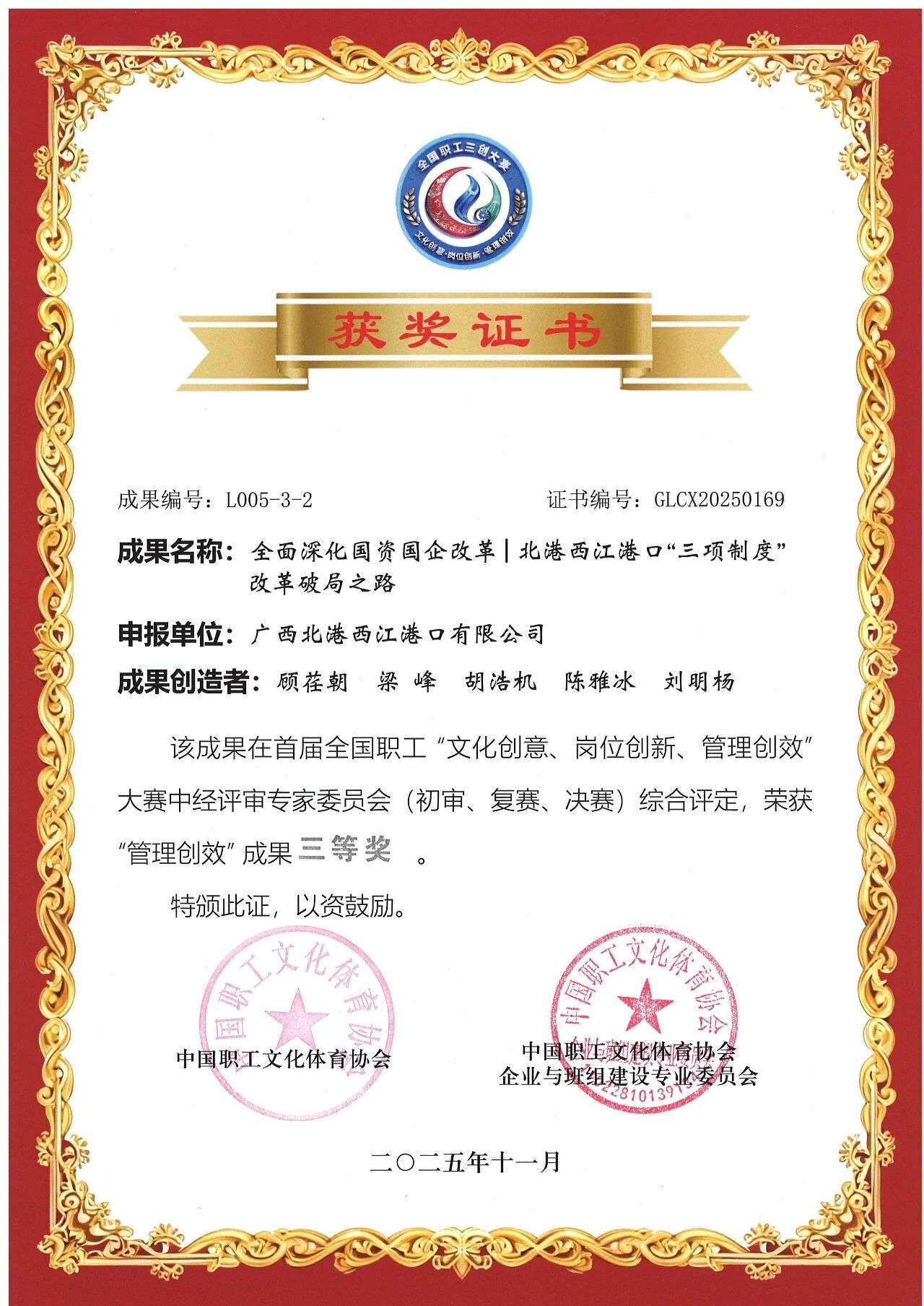 全国一等奖1个!三等奖2个!北部湾港集团在首届全国职工“三创”大赛斩获佳绩
