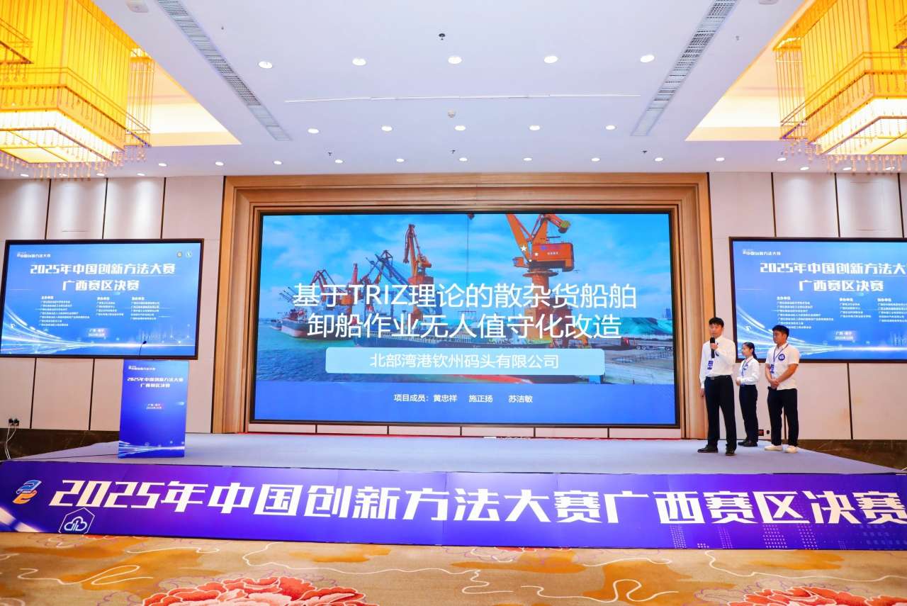 近日,2025年中国创新方法大赛广西赛区决赛在南宁圆满落幕。北部湾港集团旗下华锡有色申报的《基于TRIZ方法解决光伏焊带热浸涂覆工艺的难题》和钦州码头申报的《基于TRIZ理论的散杂货船舶卸船作业无人值守化改造》两个项目,凭借TRIZ理论的创新应用,分别荣获一等奖、优秀奖等荣誉。
