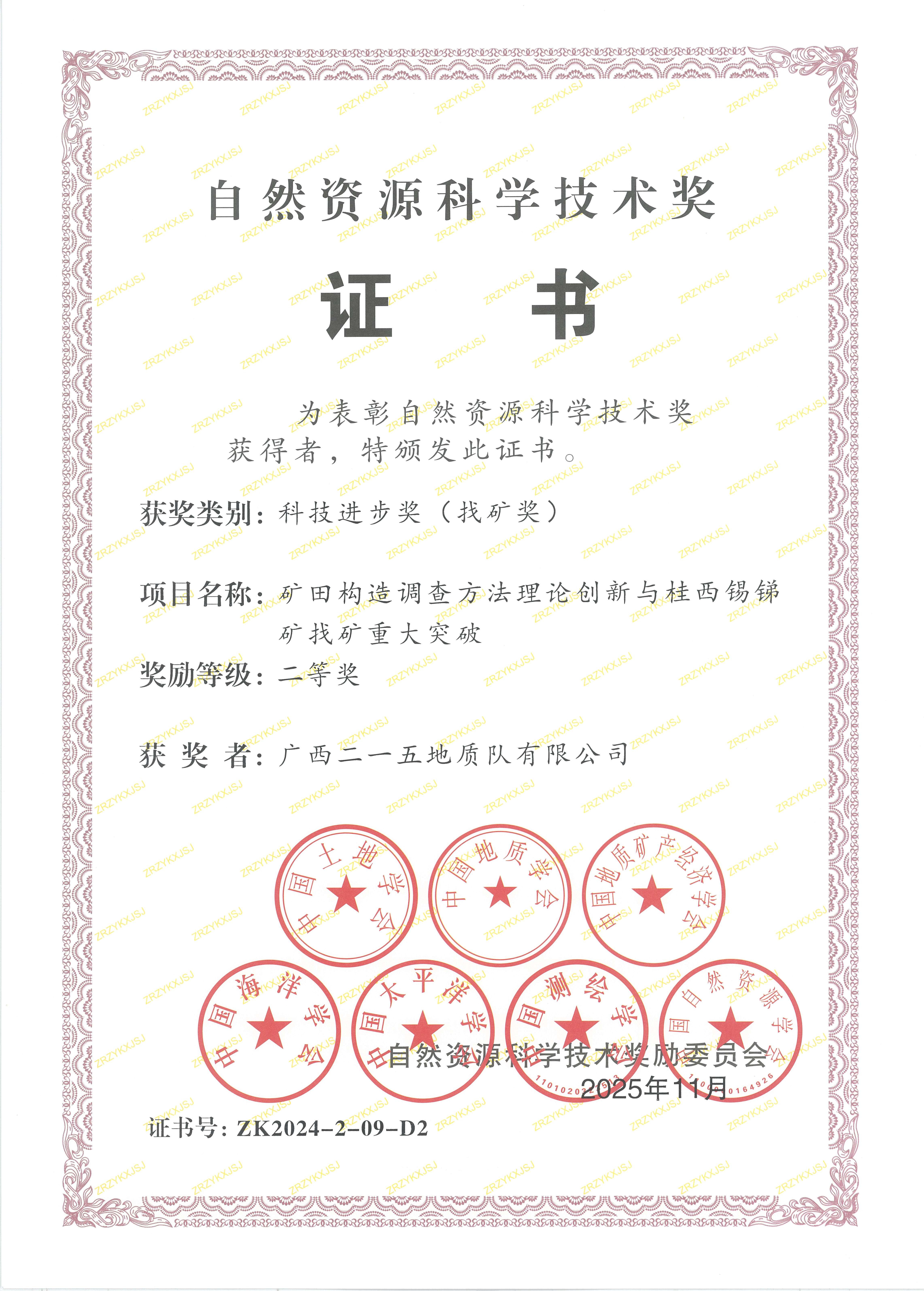 近日,自然资源部正式发布2024年度自然资源科学技术奖获奖成果公告。由北部湾港集团旗下华锡有色215地质队主要参与完成的“矿田构造调查方法理论创新与桂西锡锑矿找矿重大突破”项目,在众多优秀成果中脱颖而出,荣获科技进步奖(找矿奖)二等奖。