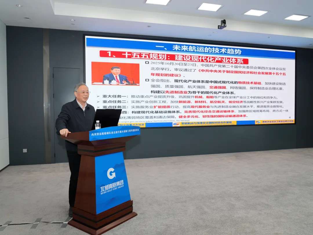 他介绍说,在自治区党委、政府的坚强领导下,在各有关部门特别是自治区交通运输厅的关心指导下,北部湾港集团在智能航运科技创新方面已取得阶段性成效,牵头承担了交通运输部多项重点项目。“西部陆海新通道智慧水运大模型研发与应用示范”入选广西“人工智能+”重点技术攻关项目,以及建造的平陆运河5000吨级示范船成为内河船舶智能化、绿色化的标杆。未来,北部湾港集团将按照国家智能航运科技创新的部署要求,通过“人工智能+交通运输”,赋能西江内河、平陆运河、北部湾港等水运基础设施一体化发展。集团公司愿与各方携手,共同开拓智能航运的新蓝海,全力打造内河航运新质生产力样板工程,形成具有自主知识产权、可复制推广的“北港方案”,不断提升内河航运科技创新和绿色发展能力。