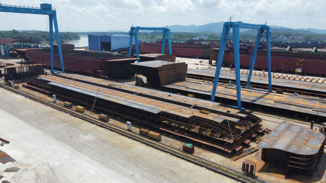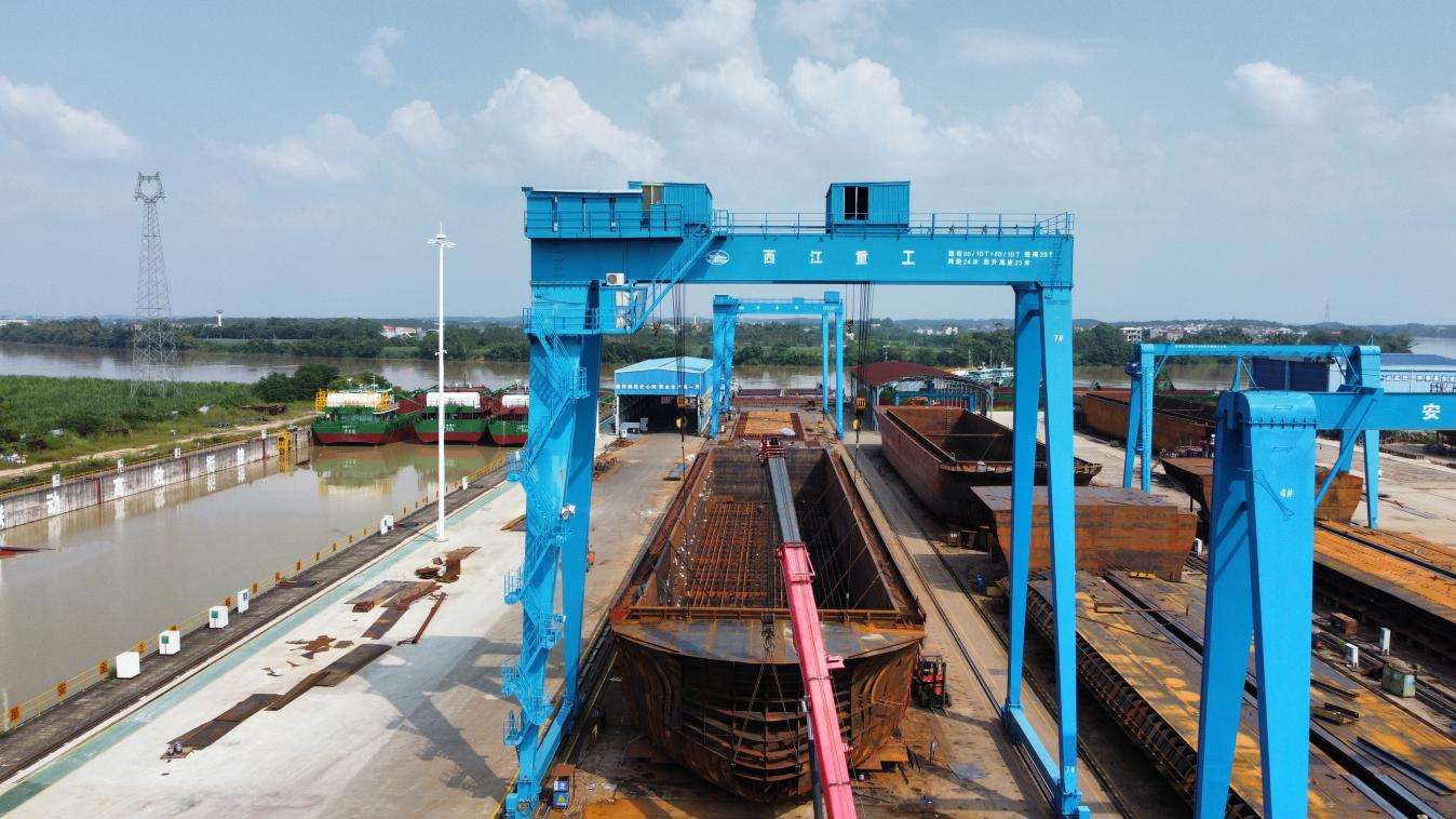 近日,在贵港西江重工造船基地一派繁忙建造景象,由北部湾港集团旗下广西北港西江港口有限公司牵头、广西西江重工有限公司承建的平陆运河示范船项目全速推进。当前河船已进入气罐吊装关键工序,海船建造有序开展,项目锚定2026年8月中旬前顺利下水运营目标,以硬核装备保障筑牢平陆运河高质量通航根基。