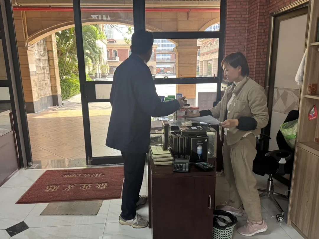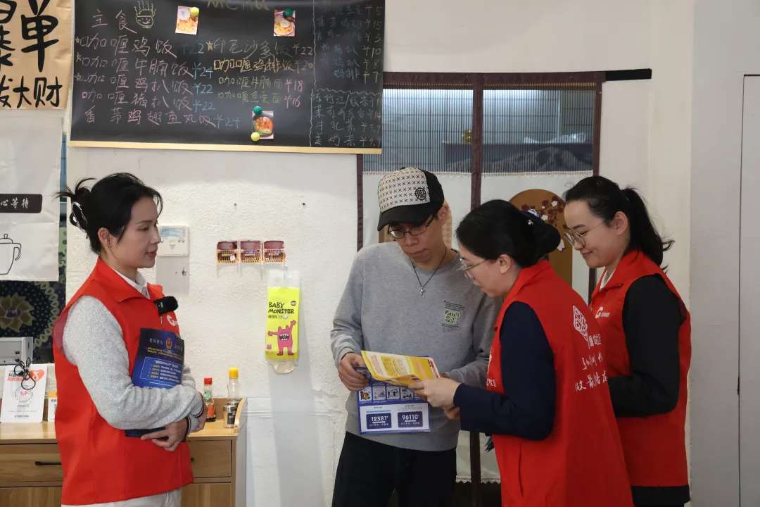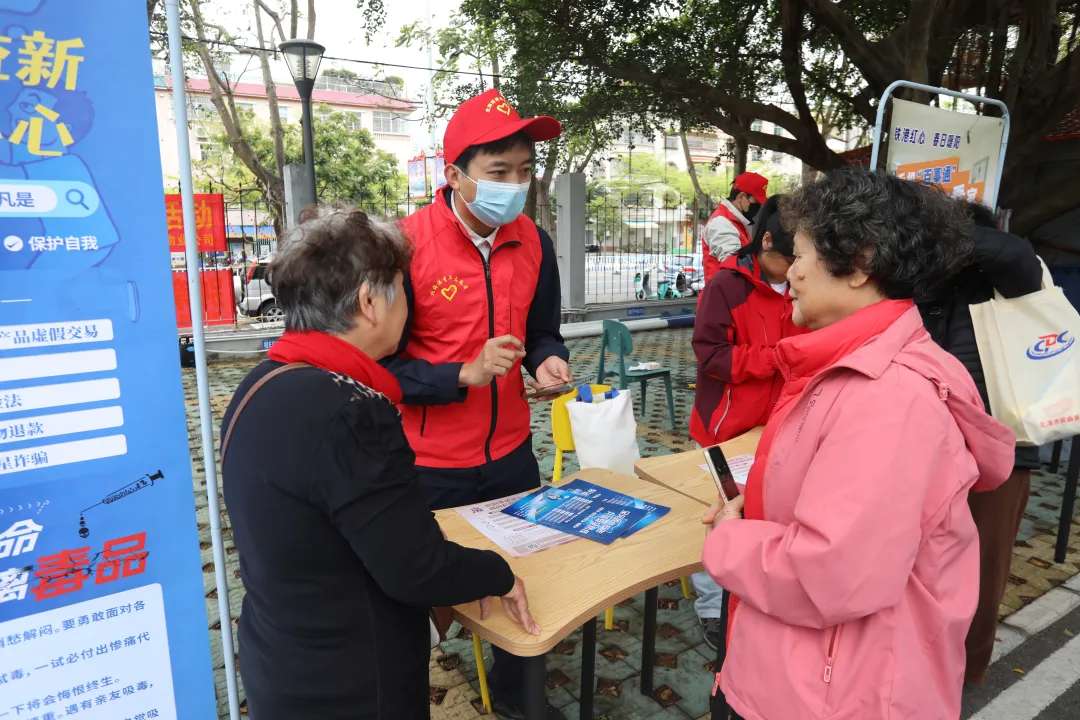 在南宁蟠龙社区,北部湾港股份志愿者化身“安全宣传员”,身披红马甲穿梭在沿街商铺间,逐户开展消防安全排查,面对面讲解反诈技巧,将实用知识送到居民和商户身边。