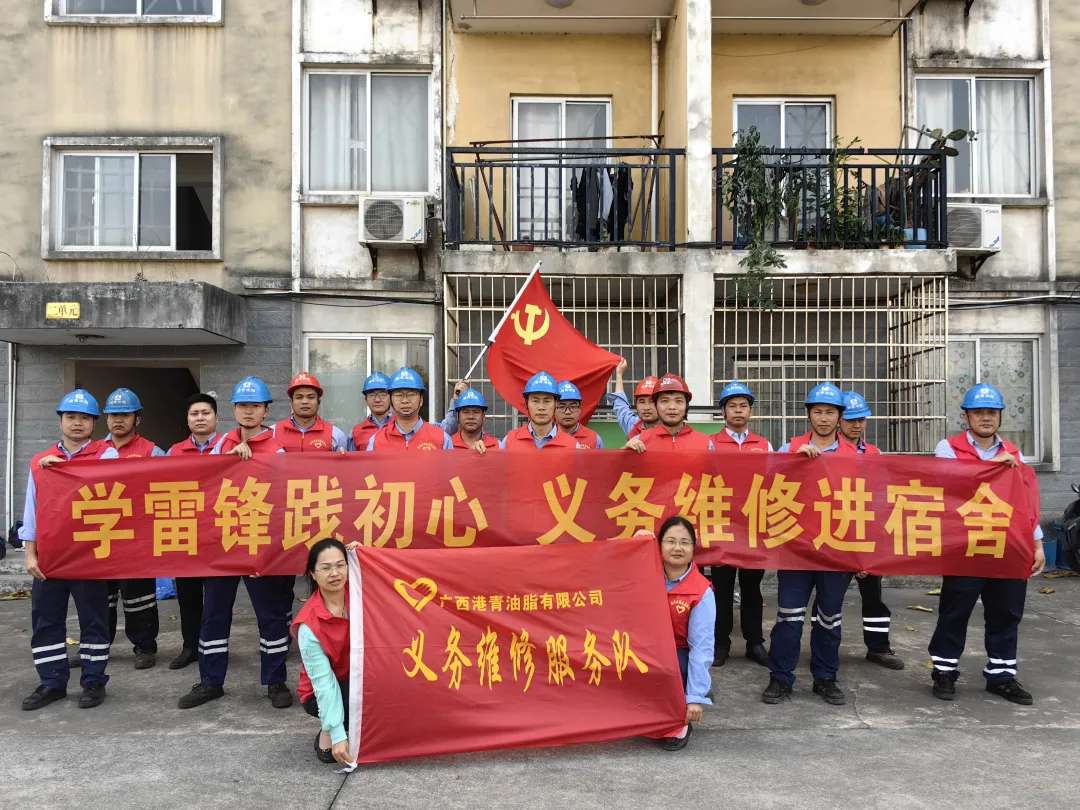 北港油脂志愿者在公司厂区除草翻新、消除隐患,并开展“义务维修进宿舍”活动,聚焦员工宿舍小家电故障、门窗门锁损坏等日常难题,分组上门检修,用心用情服务员工。