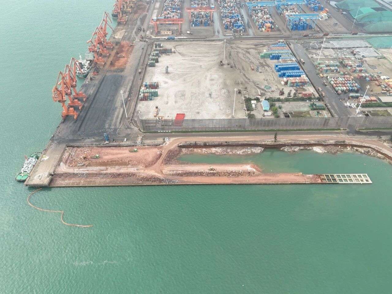 本次安装的沉箱为1号、2号泊位岸壁式沉箱结构的重要组成部分。截至目前,项目沉箱预制完成44座,出运38座,安装完成25座,1、2号泊位沉箱的顺利收官,为项目整体推进奠定了良好基础。目前,项目后方陆域土方回填已全部完成,强夯施工基本结束,防风网、斗轮机基础、堆场铺面等各项工序正同步推进。