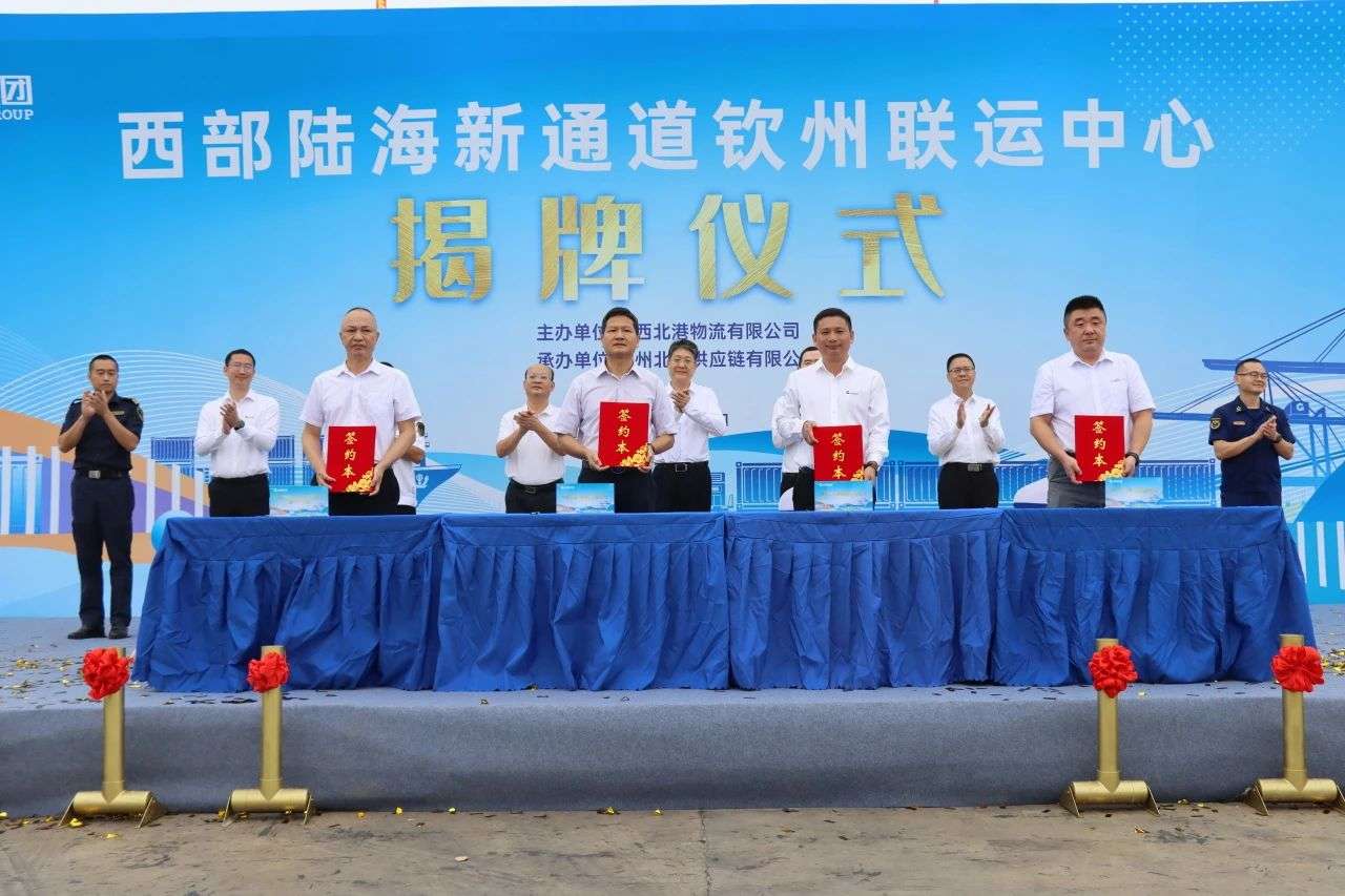揭牌当日,钦州联运中心吸引了中铁国际多式联运有限公司南宁分公司、信风(宁波)海运物流有限公司、中粮贸易(深圳)有限公司等一批企业达成合作意向,并签署合作协议。未来,钦州联运中心将成为连接陆与海、东与西的新坐标,为内外贸企业提供更经济、便捷、高效的“海铁衔接”运输服务,启动多式联运“发动机”,形成高效高品质服务链,释放北部湾港澎湃动能,将优质产品远销全球,向世界展示中国企业的卓越风采。