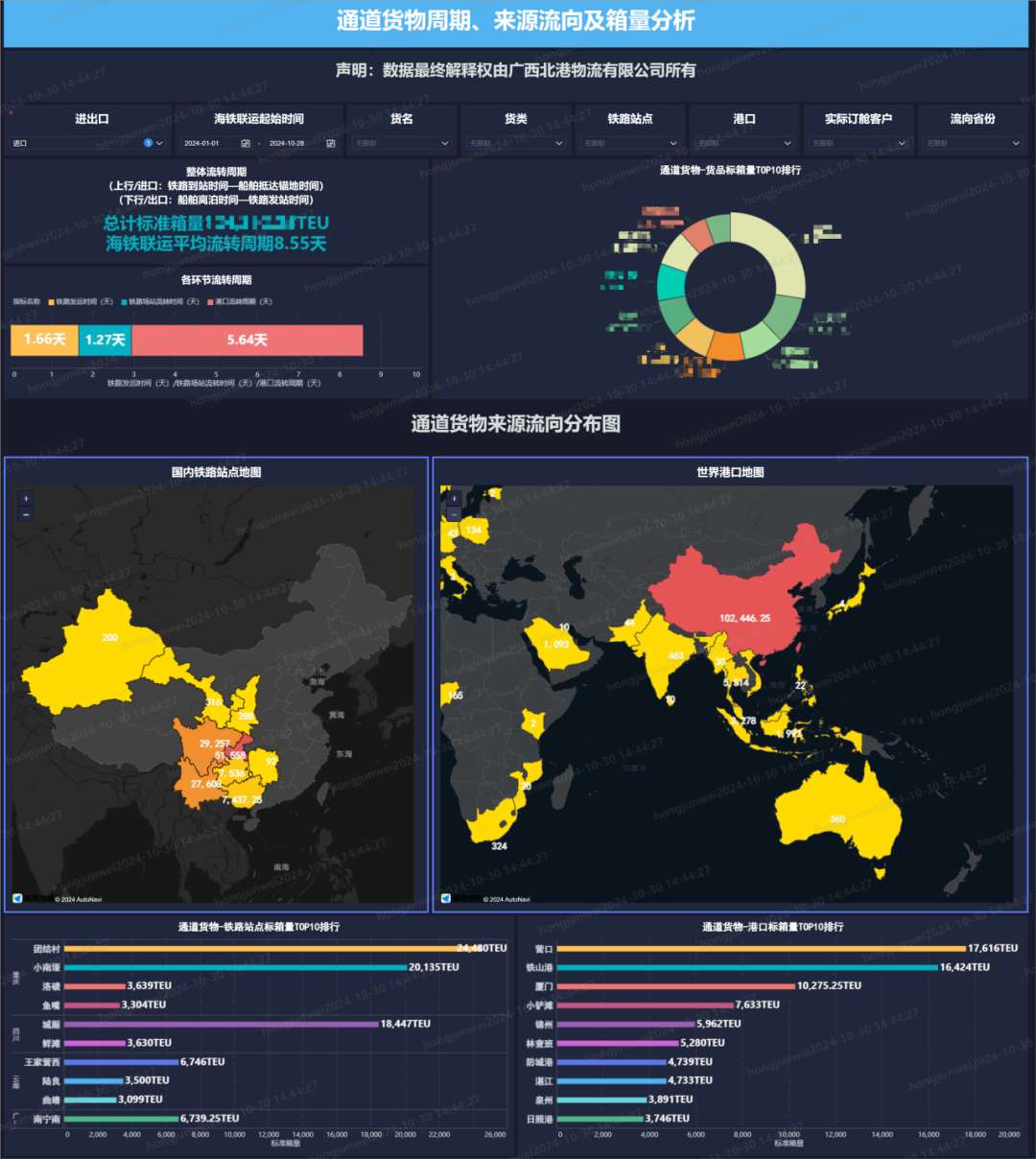 据了解,基于该平台广西北港物流有限公司构建了一个集实时监控与深度数据分析于一体的数字化运营生态系统,通过可视化手段,实现了货源调查、运量分析、市场趋势预测以及运输瓶颈预警等功能的一体化,为业务开展提供了更高效和精确的数据支持,提高了运营效率和决策能力,并为货物定制了更优质的物流解决方案。