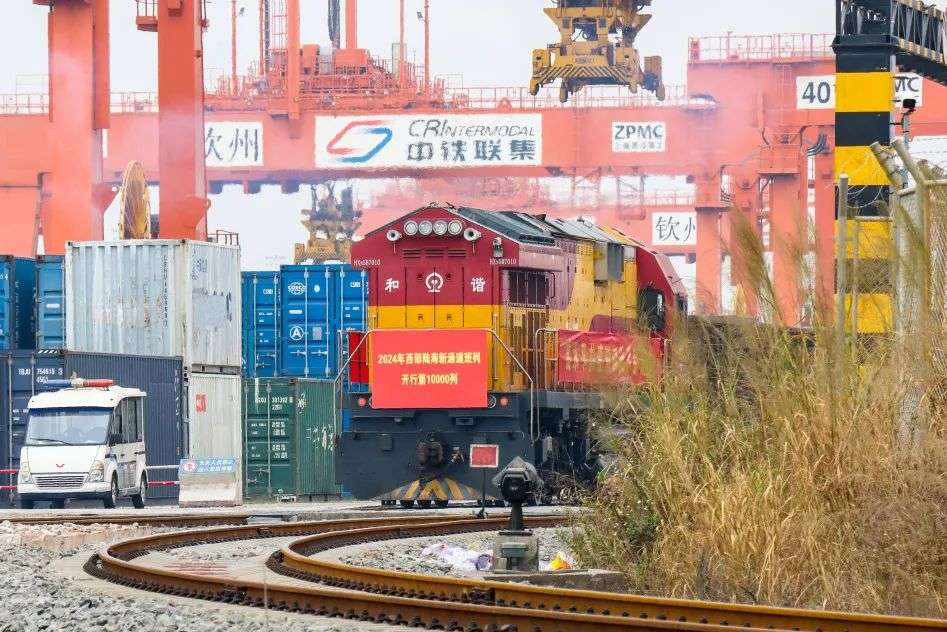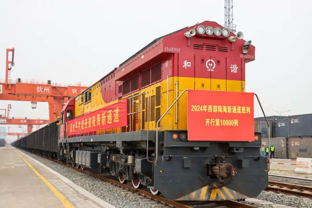 10000列,新里程,新篇章,新起点。北部湾港集团将继续乘势而上,全力以赴“高质量共建西部陆海新通道,高水平打造北部湾国际门户港”,扎实推进西部陆海新通道提质增效降本优服,助推“一区两地一园一通道”建设,激活国内国际双循环新动能,为西部地区经济高质量发展和融入新发展格局提供有力支撑!