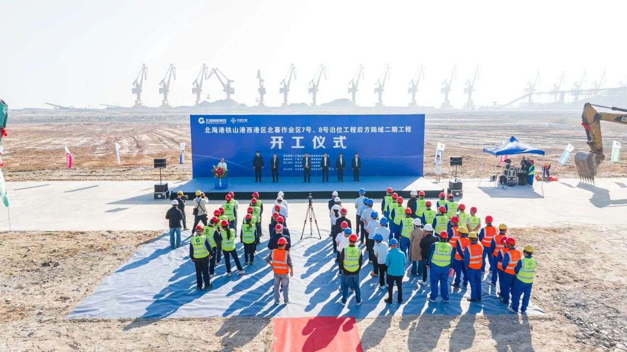 本次开工建设的后方陆域二期工程(以下简称:项目二期)总面积约38.63万平方米,主要包括道路堆场、供电照明、排水及环保等配套工程,建设工期约21个月。项目二期建成后,将为北海港区新增货物堆存能力410万吨,可进一步满足煤炭、铁矿石、锰矿石、桉木片及袋装化肥等多种货类的仓储需求,显著提升泊位接卸及配套能力,保障货物高效流转;同时优化港口集疏运体系、增强枢纽功能,通过陆海协同、港企联动延伸港口服务链条,助力区域产业拓展空间、集群发展。