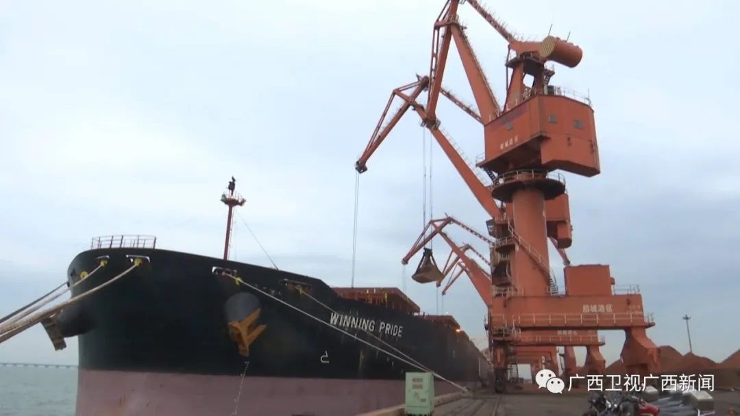 4月13日上午,在北部湾港防城港码头402号泊位,一艘来自新加坡的货船正在进行卸船作业,船上装载17万吨铝矿。今年以来,北部湾港防城港码头有限公司一手抓防疫一手抓复工复产,积极服务临港企业及西南腹地生产企业,挖掘堆存能力,狠抓进口货物接卸,为铁矿、煤炭等大宗散货运输创造良好条件,同时发挥防城港大宗散货集散市场的优势,加大钾肥、铁矿等装箱配送量,港口吞吐量增长迅速。今年一季度,防城港码头公司吞吐量完成2507万吨,同比增长18.1%,集装箱吞吐量完成12万标箱,同比增长45.7%,实现逆势上扬。