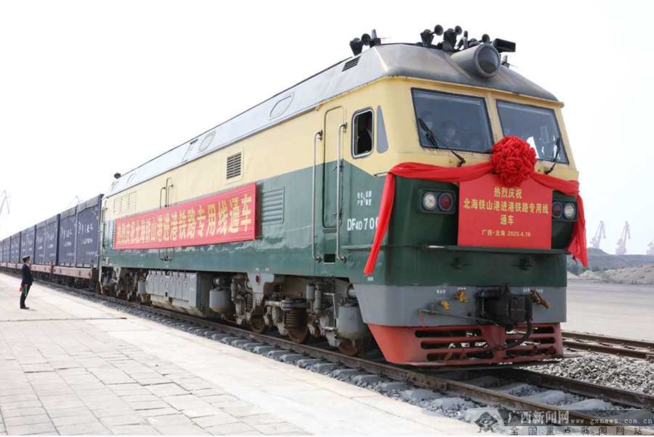 4月16日,广西壮族自治区北海铁山港进港铁路专用线通车仪式在北海举行。当日10时30分,随着一声嘹亮的汽笛,0416次列车装载着60箱原煤从北海铁山港出发驶向玉林。告别了货物中转的历史,实现了北海铁山港国内外物资港口与铁路无缝对接。
